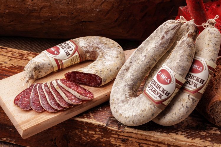 Съставки: говеждо месо, свинско месо, сол, захар; подправки: кимион, черен пипер; консервант: натриев нитрат.
